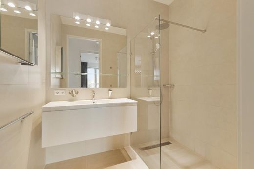 In total, there are 2 terraces and 1 balcony. The entire finishing of this flat is of a high quality level with lots of customisation. There are many, custom-made, fixed cupboards as well as a folding spare bed. In the kitchen there are Miele and Bora built-in appliances, LED lighting with dimmers by Chique and Paloma, there is a parquet floor throughout the flat (except for the bathrooms), luxury curtain upholstery and recessed lighting in various closets. There is also a video intercom with camera security in the common areas of the building. Outdoor lighting and extra power sockets have been installed on the terraces, and the terraces are accessible via folding walls so that in good weather the living room flows seamlessly into the outdoor areas.